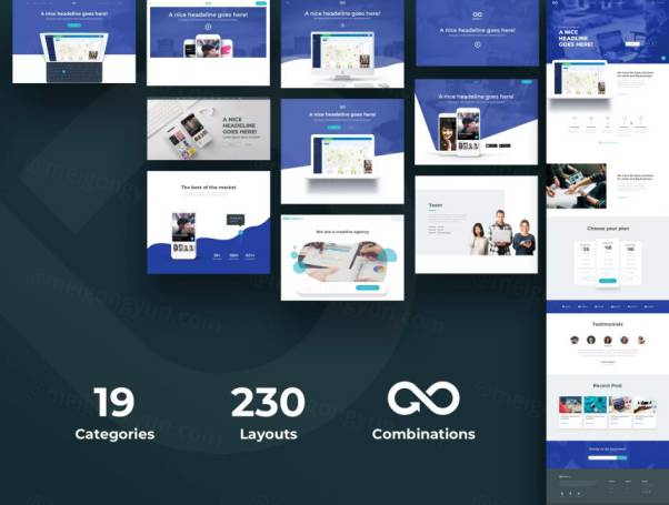 所有布局都非常易于组合和自定义,此外,您还可以使用此UI Kit中内置的数百个随时可用的组件来创建自己的布局。包含200多个即用型版面部分,分为19个受欢迎的内容类别。