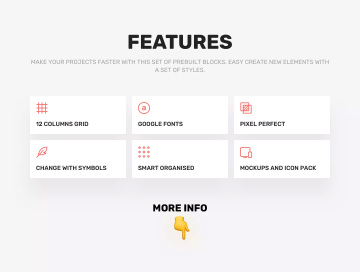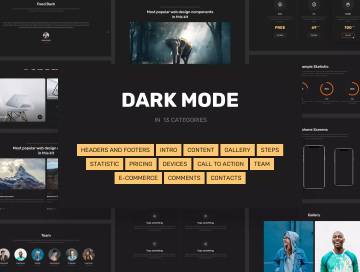简单的页面构建套件,有了它的帮助,您的项目将更快地创建,并且可以优化您的工作。150多个预制块,图层和文本的整体样式。所有这两种颜色可供选择!