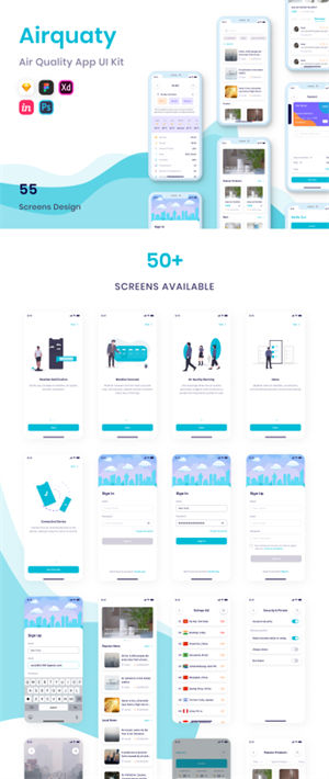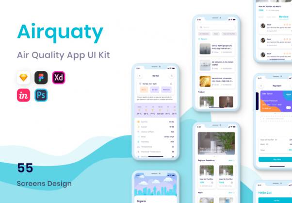 图穷联素材库 » 空气污染指数实时质量监测APP应用程序UI界面素材 Airquaty