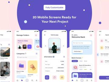 这是一个文件管理App应用iOS UI套件,提供了20个精心制作的移动应用程序屏幕,您可以在下一个个人或商业项目中使用它们。