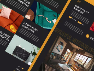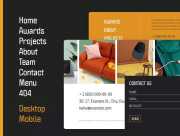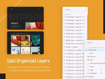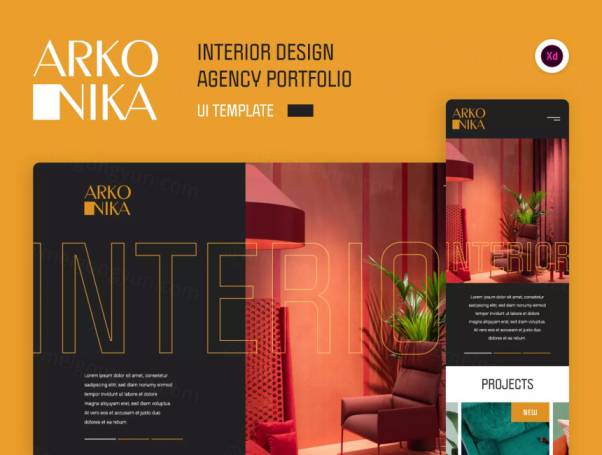 为室内设计网站制作的UI模板。它包括多种布局,如“深色与浅色”模组,“主页”,“主屏幕”,“项目列表”和“项目展示”的几个选项,响应式设计,当然还有Web和App版本。当您需要立即可用的精美设计模板来展示您的产品组合时,此网站UI模板是一个很好的解决方案。