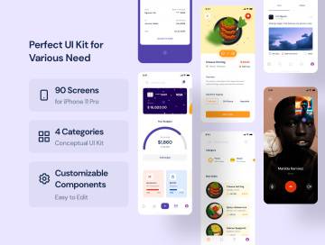多功能iOS UI套件,对细节的创建充满热情和一丝不苟的关注,可以根据您的产品需求提供具有全部功能的APP应用UI设计套件。各种元素可满足以下需求:财务、食品配送、社交网络以及“登录和注册”。通过使用圆形和现代线条来制作独特的样式,以帮助您创建具有现代风格和未来的产品。