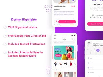 这是一个干净而详细的时尚电子商务APP应用设计UI套件,它是使用面向转换的UX设计和构建的。拥有50多个屏幕,组织良好的图层以及可重复使用/可编辑的组件,您可以使用该模板通过其专用的电商APP移动应用程序来增强您的电子商务业务,或者只是使用它来加快项目工作流程。