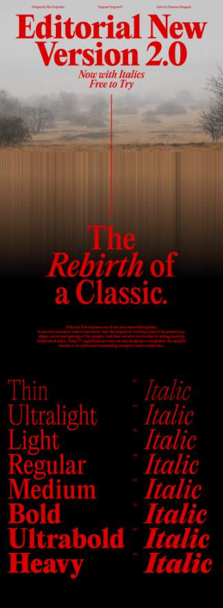 图穷联素材库 » 90年代中期复古风格优雅的细窄衬线英文字体 Editorial New - Pangram Pangram Foundry