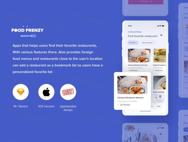 这是一款可帮助用户找到自己喜欢的餐厅的美食APP应用程序iOS UI套件,旨在帮助您启动项目!借助实用且可扩展的14个屏幕以及可自定义的组件!