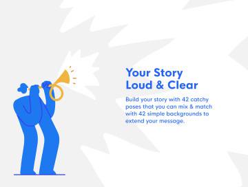 这是一个很酷的矢量插画包,其中包含42个有趣的角色姿势,这些都会吸引访问者的注意力。还有42种您可以混合搭配的简单背景。所有人物角色插画均为100%矢量,可轻松自定义。