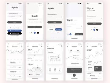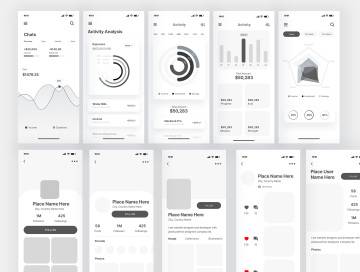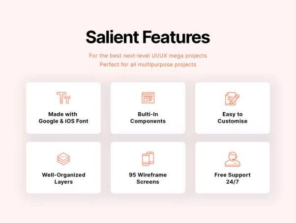 多功能的95个App线框图设计屏幕,原型设计,具有最终组件,可在数秒钟内完成原型制作,从仪表板,登录到配置文件和图表的95个app屏幕,可在几分钟内从包含95个布局和组件的库中构建应用APP线框。结构良好的符号和样式指南,拖放设计组件以满足各种设计需求。适用于应用程序设计上任何类型的9个惊人的最常用类别(签名,注册,OPT代码,演练,菜单,个人资料,仪表板,搜索,聊天,电子商务,图表,数据分析)