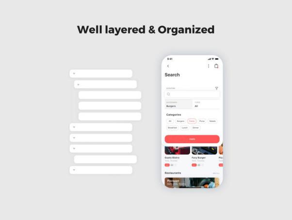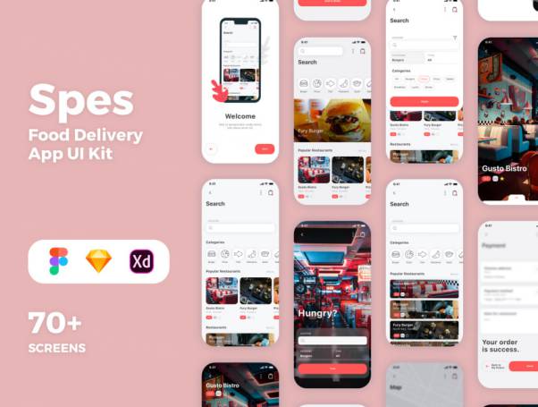 食品配送服务移动应用APP UI套件,包括Sketch,Adobe XD和Figma文件。每个屏幕都是完全可定制的,可自定义的图层,字体和颜色。并且用符号组织得很好。它包含74个屏幕。