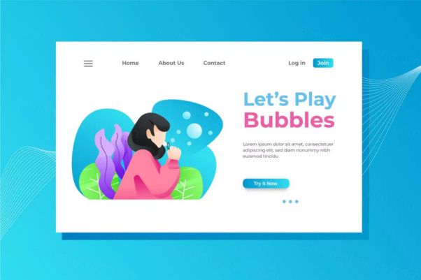 图穷联素材库 » 儿童娱乐主题网站着陆页设计矢量插画 Play Bubbles Land