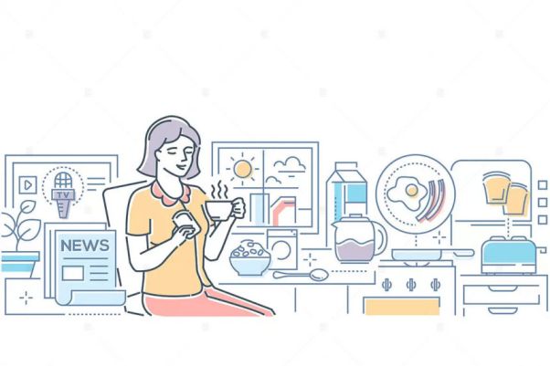 图穷联素材库 » 早安主题线性设计风格矢量插画 Good morning – line