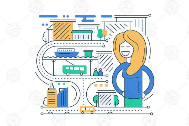 图穷联素材库 » 城市生活主题线性设计风格矢量插画v2 City Life – line