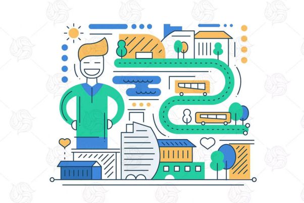 图穷联素材库 » 城市生活主题线性设计风格矢量插画v3 City Life – line