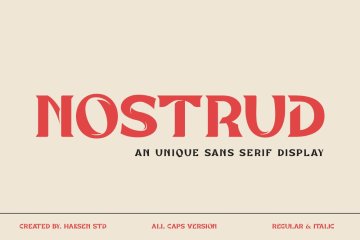 NOSTRUD是一种强大的现代无衬线字体风格,所有大写字母感觉很好平衡。其大写范围广泛,可提供多种设计选项,非常适合标题、徽标、海报、包装、T 恤等。