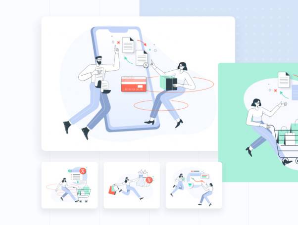 图穷联素材库 » 创意场景电子商务和商业主题线性插画素材包