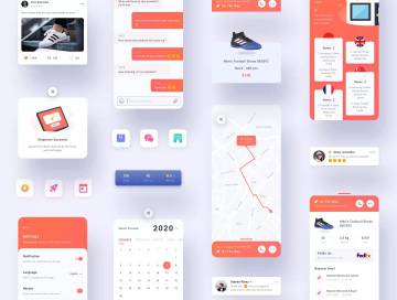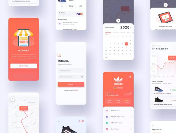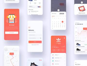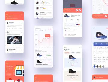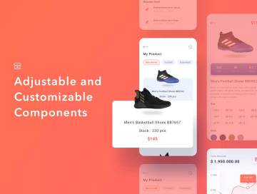 品牌鞋类商城APP应用UI设计套件,可定制且可与纯净组件一起使用。您可以在项目中立即使用15个高级屏幕 。
