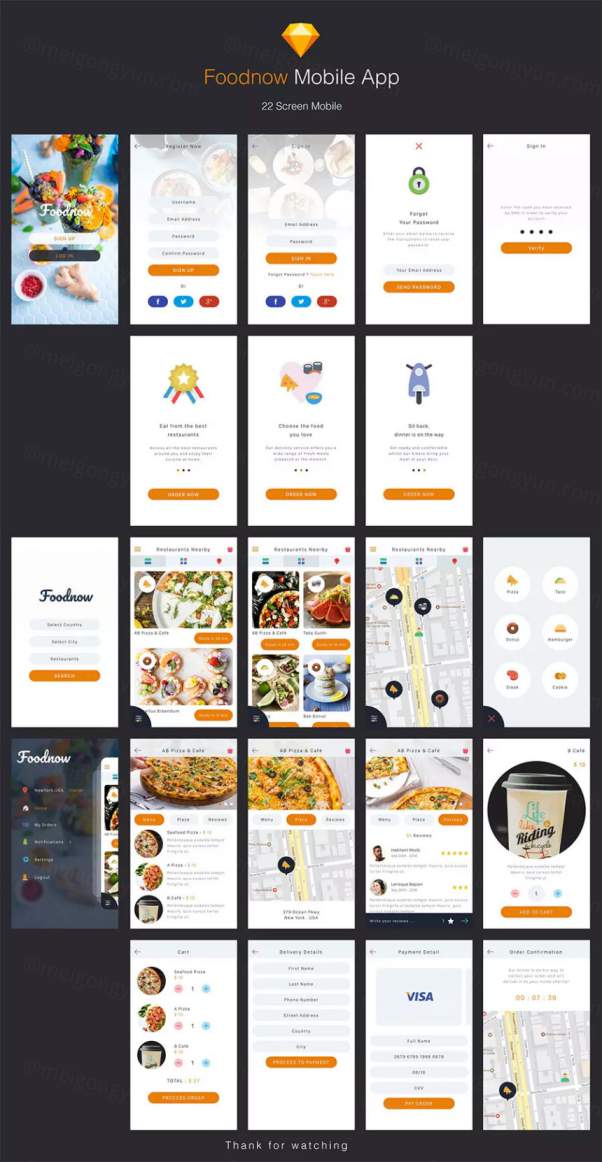 图穷联素材库 » 简易好用的美食类订餐APP UI KITS下载[Sketch]
