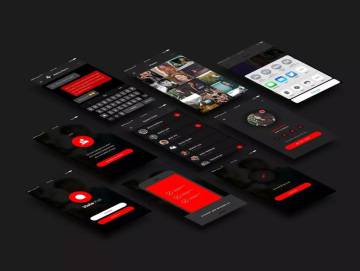 分享一组质感爆棚的黑红色系UI Kit下载[sketch],9个独特的sketch功能界面,自由定制编辑。