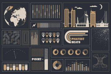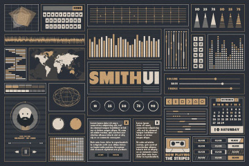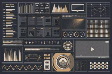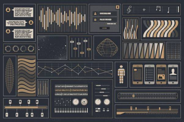 高端复古风格配色的概念播放器UI套装,界面结合粗线和细线,包含应用程序,信息图表,网站等吨的UI组件。没有渐变,该工具包只使用3种不同的颜色,所以它是非常容易改变整体颜色方案使用“选择相同的填充颜色“ 选项。使用透明度。