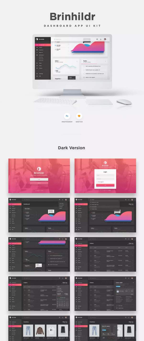 超简洁亮粉色后台界面UI Kit打包下载[PSD,sketch]