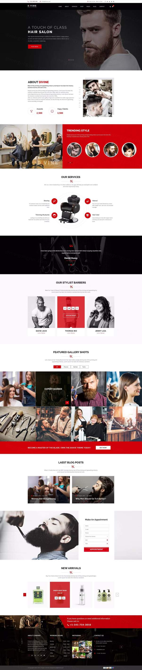 高端帅气的适合美容美发类的网站设计模板(psd)