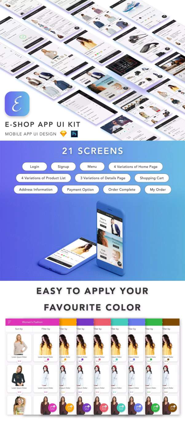 图穷联素材库 » 实用的服装电商行业APP UI Kit打包下载[psd,sketch]