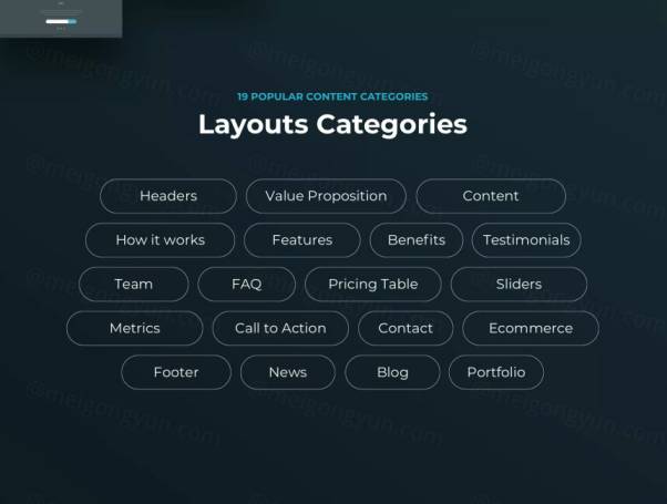 所有布局都非常易于组合和自定义,此外,您还可以使用此UI Kit中内置的数百个随时可用的组件来创建自己的布局。包含200多个即用型版面部分,分为19个受欢迎的内容类别。