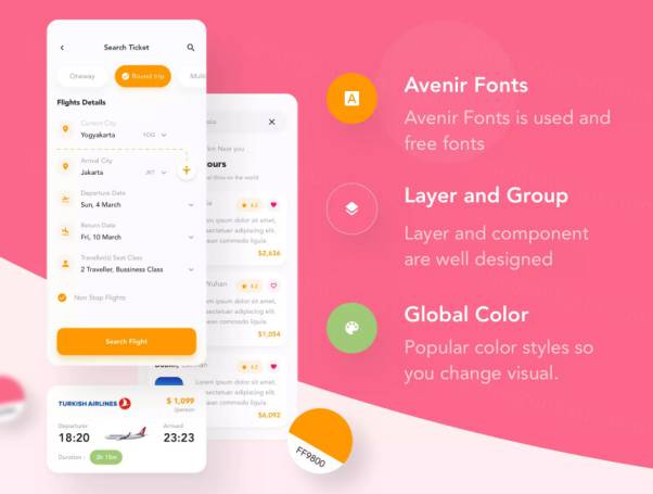 这是一个包含40多个旅行APP应用程序屏幕的iOS UI设计套件,它将加速和促进您的设计过程,并将帮助您开发出色的体验。主要功能搜索机票,酒店和飞机,以查找您的旅程中的事件或目的地。该旅行APP设计套件的创建方式使所有组件都可以完全自定义。