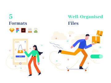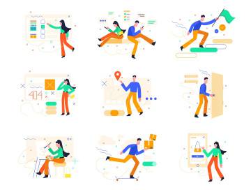 时髦的10张人物插画包使您的Web项目脱颖而出。下一个着陆页、应用程序屏幕或博客文章封面的商业场景。专为UI / UX专业人员,设计机构,启动所有者,开发人员和忙碌的设计师量身定制的现代且独特的插画风格。