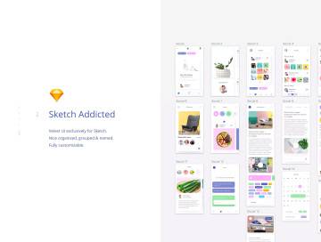包括70多种iOS简约设计风格的高品质天鹅绒用户界面套件APP UI KITS(sketch),是基于简单和干净的设计的高品质包,包括70多种iOS设计的素描,最流行的类别(登录/注册,演练,菜单,电子商务,个人资料,社交等)的屏幕模板。