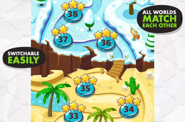 分享一组木质卡通风格游戏GUI模版下载[psd,png],分层清晰的psd文件中包含12个预设屏幕,8个ATLASES(2048×2048px),包含.psd和透明.png文件,9个不同的世界地图样式。100%矢量,可编辑和可扩展。