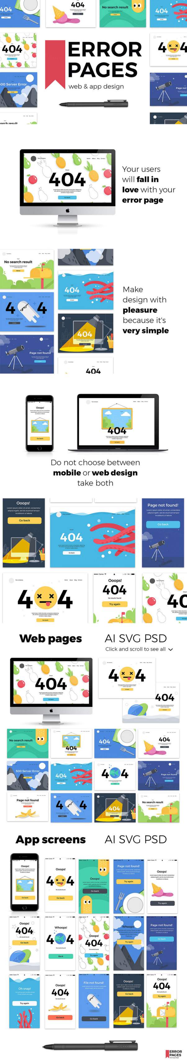 富有创意且有趣的404错误提示APP+WEB页面插图模板下载[Ai]