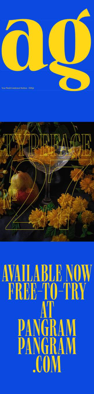 Neue World 是一个免费试用的超级衬线字体系列,有 6 种宽度和 48 种切割。