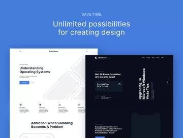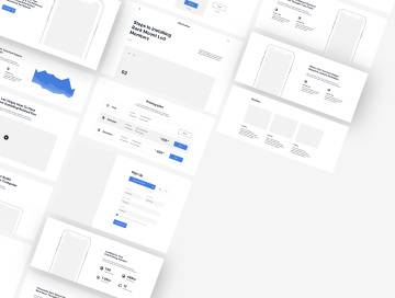 使用这款网站线框图模板,您可以无限地创建设计。包括14个主要类别中的120多个布局,2个颜色主题(浅色和深色),300多个基本元素。完全可定制的组件将帮助您更快地工作。