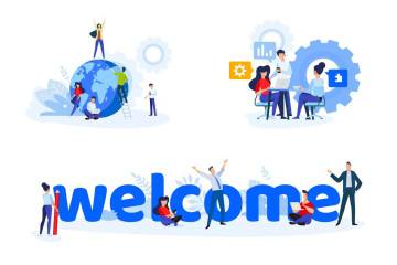 企业管理主题扁平设计风格矢量插画,包括启动、项目启动、团队管理、欢迎。网站横幅,营销材料,业务演示,在线广告的矢量概念插画。Zip中包括eps、jpg文件。